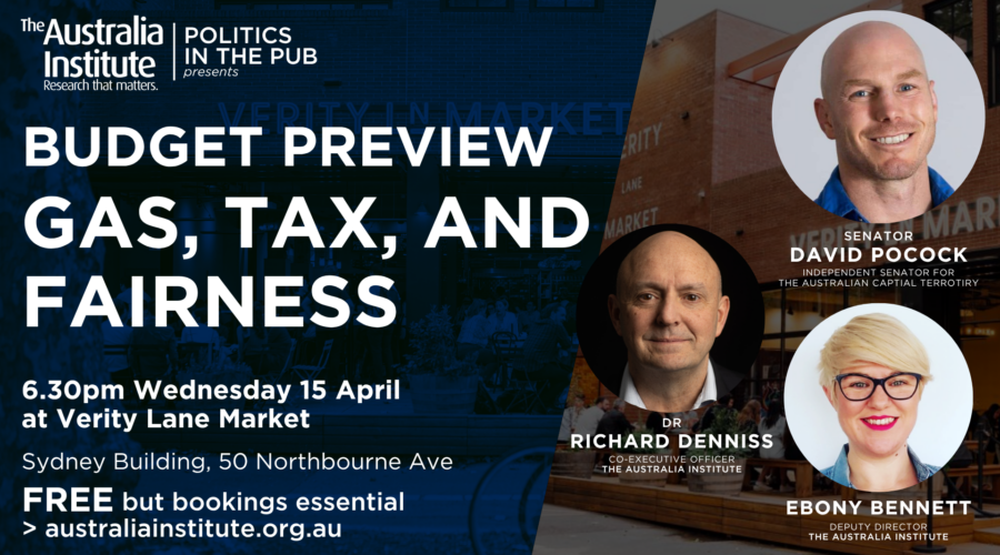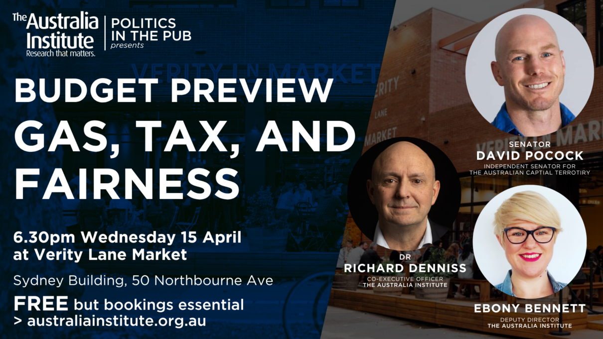 As the Federal Budget approaches, pressure is building on the government to rein in fossil fuel subsidies and ensure big gas companies pay their fair share. Join Senator David Pocock and Dr Richard Denniss, hosted by Ebony Bennett, for an in-depth conversation about how gas and fossil fuel tax policy shape Australia’s economy, environment, and