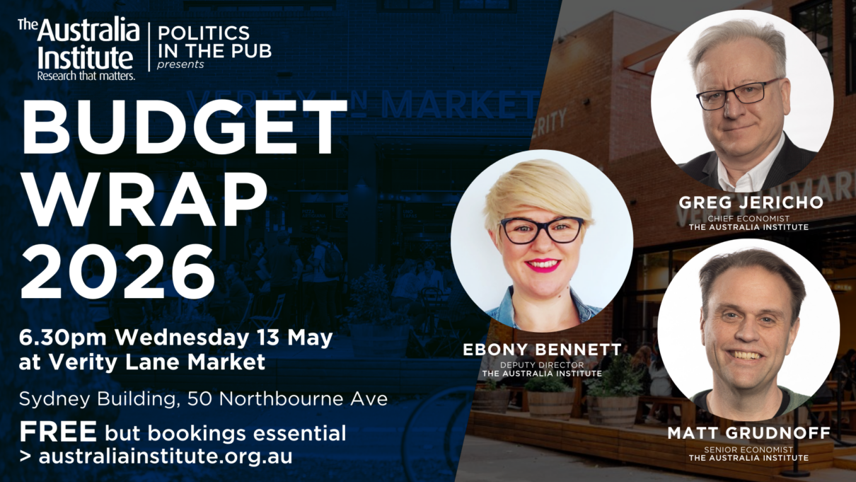 Join Greg Jericho and Matt Grudnoff in conversation with Ebony Bennett for their analysis of the 2026-2027 Federal Budget. Who wins? Who loses out? What’s hiding in the budget papers, and what do you need to know? SPEAKERS: Greg Jericho – Chief Economist, The Australia Institute Matt Grudnoff – Senior Economist, The Australia Institute Ebony Bennett