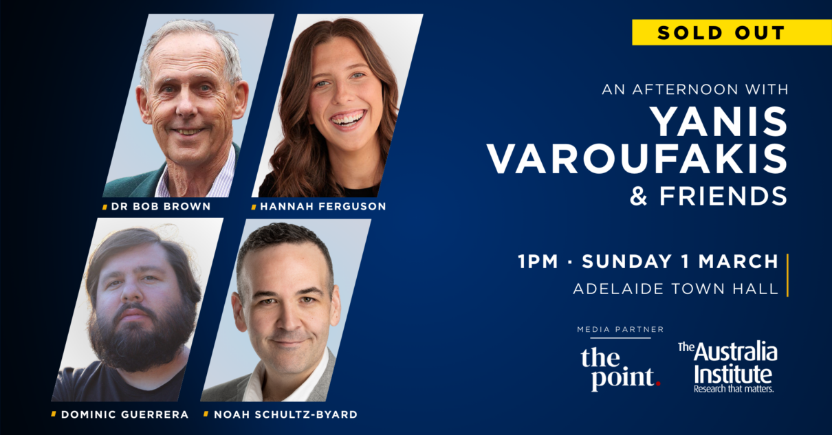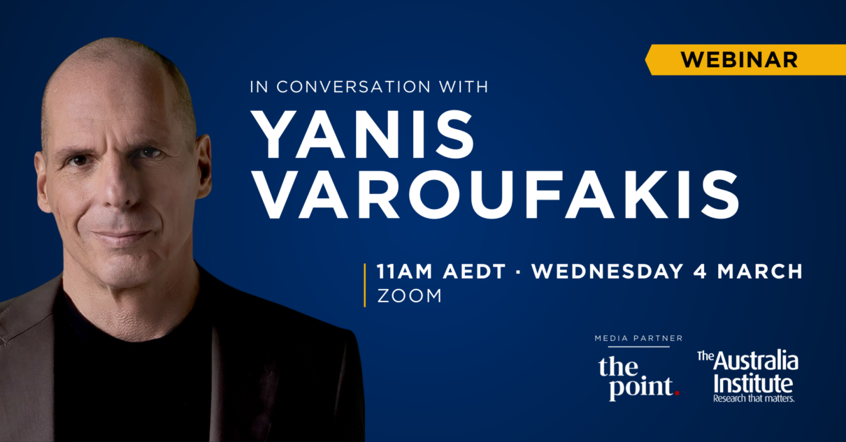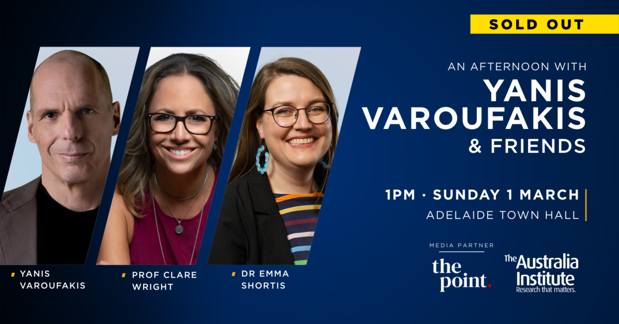 Yanis Varoufakis is returning to Australia as a guest of The Australia Institute, with events in Adelaide, Melbourne, and Sydney.