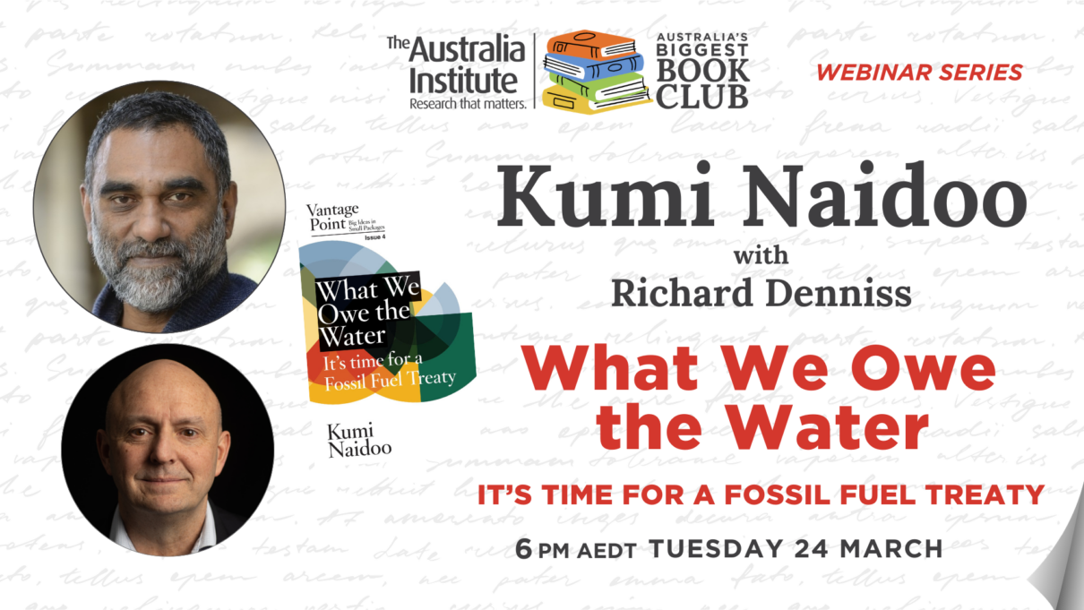 Join Kumi Naidoo in conversation with Dr Richard Denniss as they discuss Kumi’s new essay, What We Owe the Water: It’s Time for a Fossil Fuel Treaty.