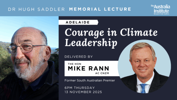 Join us at the second Dr Hugh Saddler Memorial Lecture, featuring the Hon Mike Rann AC CNZM, former South Australian Premier and current Chair of the UK Climate Group, discussing the politics of climate ambition, the importance of courage, and lessons from South Australia’s renewable energy transformation.