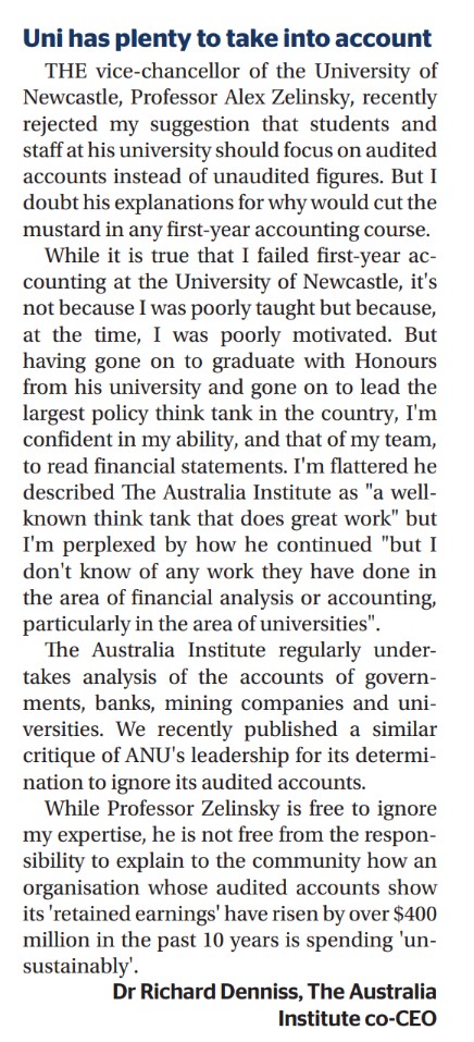 Australia Institute co-CEO Dr Richard Denniss responded in a letter to the Editor of the Newcastle Herald.